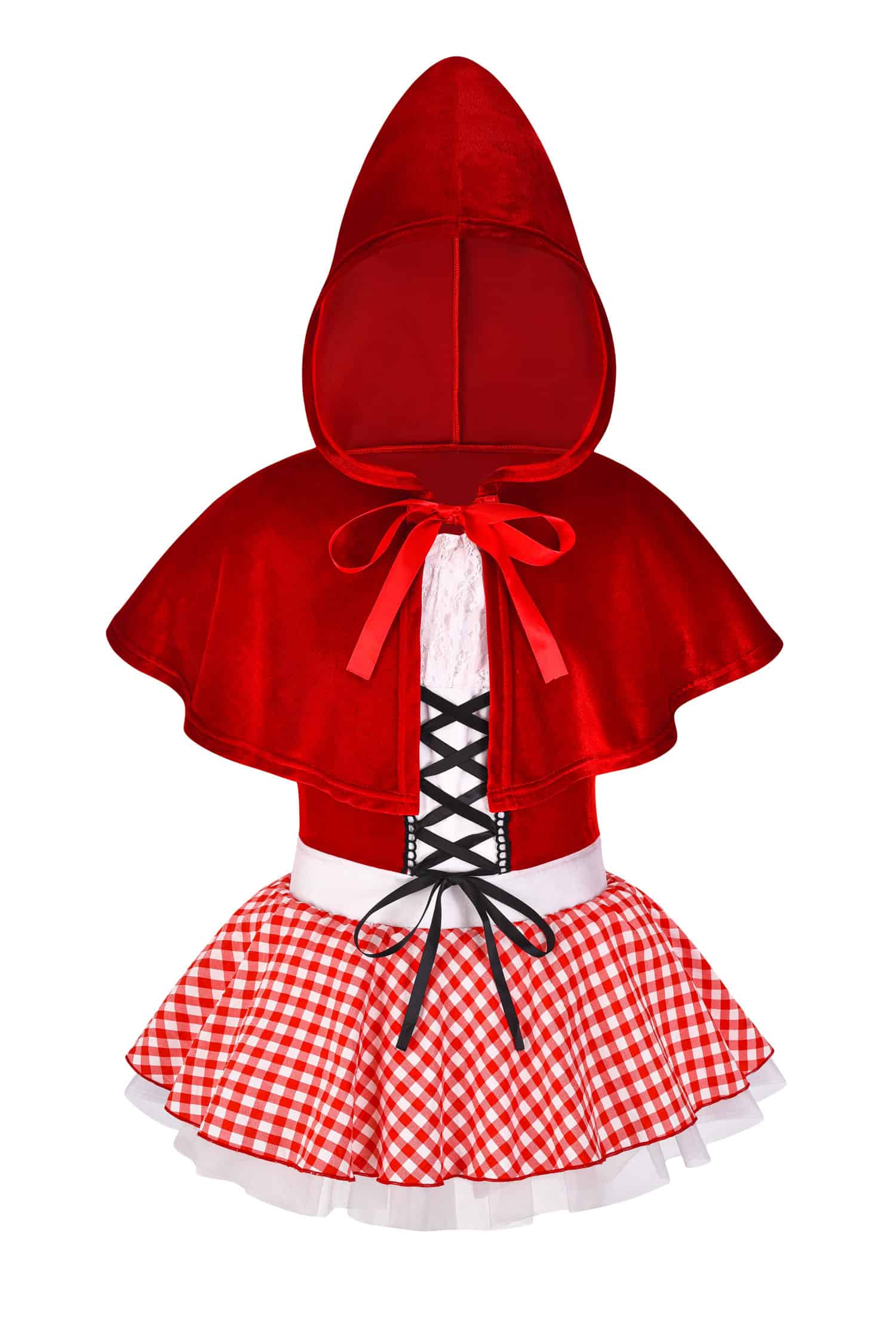Lace and velvet bodice with cap sleeves, mock ribbon corset and gingham skirt overlay